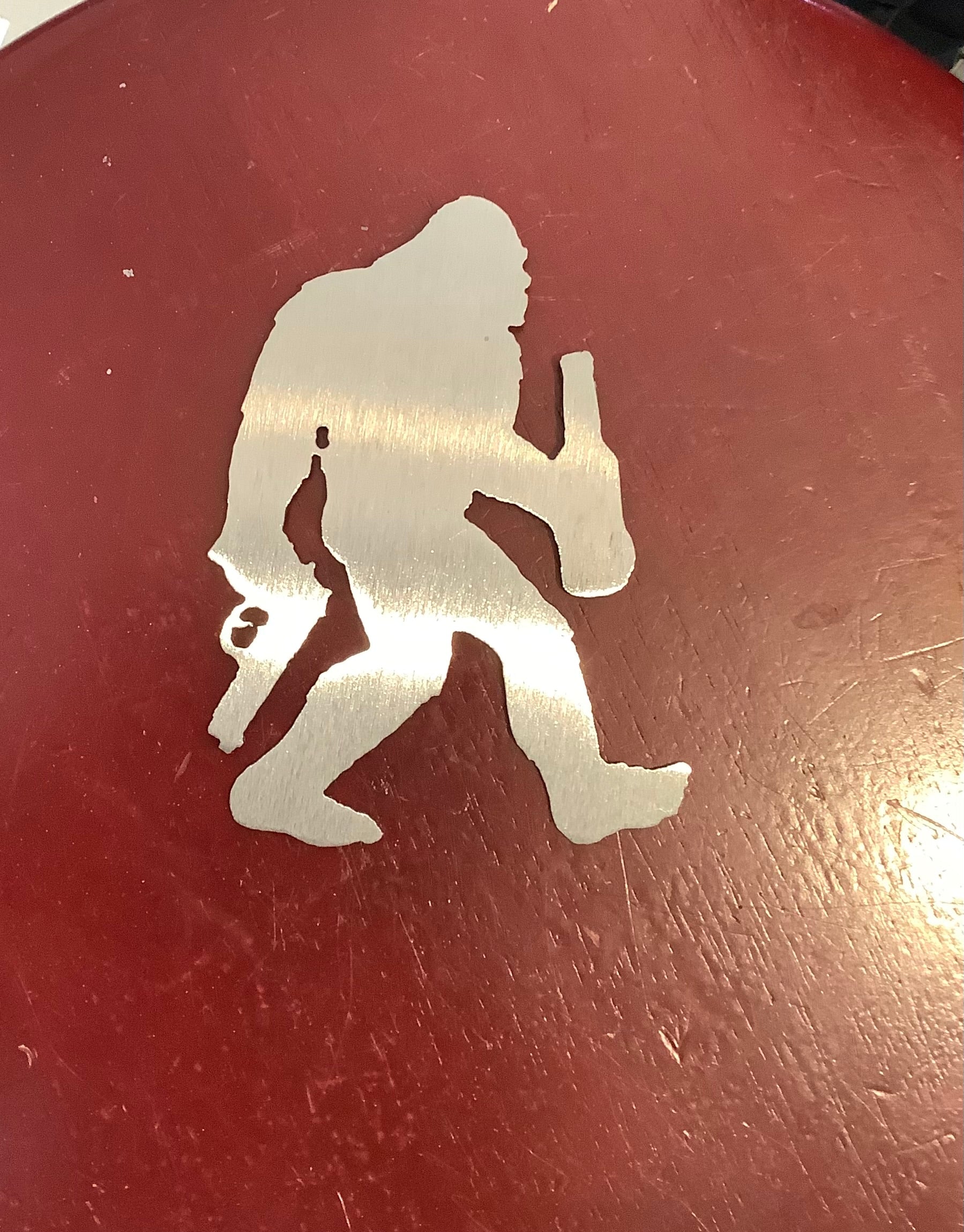 Bigfoot with gun and beer magnet metal.Cc